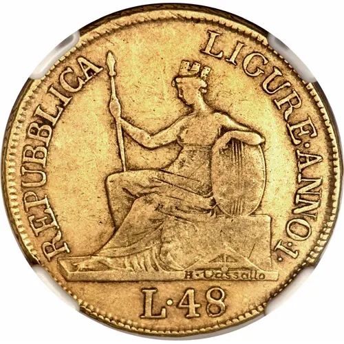 | Obverse lettering | REPUBLICA • LIGURE • AN • I H. Vassallo L. 48 |