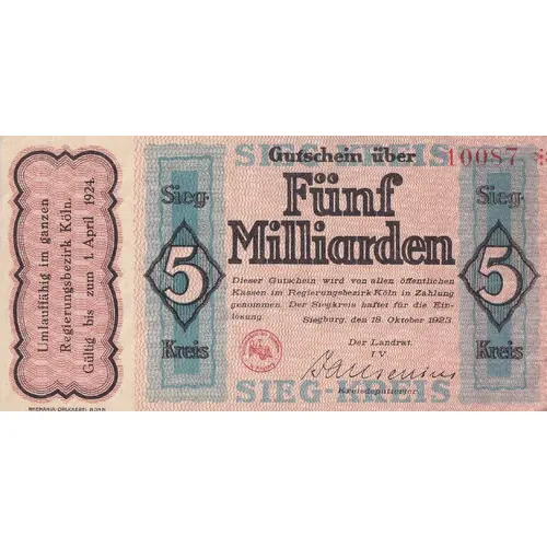 | صادرکننده | District of Siegkreis (Prussian province of Rhine) |