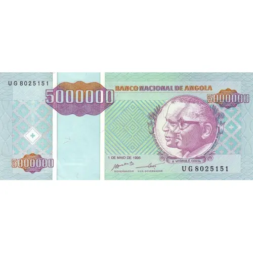 | Obverse lettering | BANCO NACIONAL DE ANGOLA 5000000 A VITÓRIA É CERTA (Translation: National Bank of Angola, Victory is Certain) |