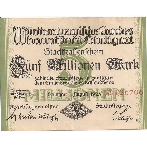 | Issuer | Stuttgart (notgeld), City of |