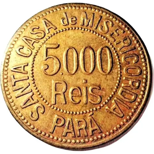| Obverse lettering | SANTA CASA de MISERICORDIA 5.000 REIS PARÁ (Translation: Santa Casa de Misericordia (Holy House of Mercy) 5 Réis Pará) |