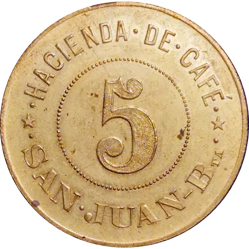 | Obverse lettering | * . HACIENDA . DE . CAFÉ . * 5 . SAN . JUAN - BTA . |