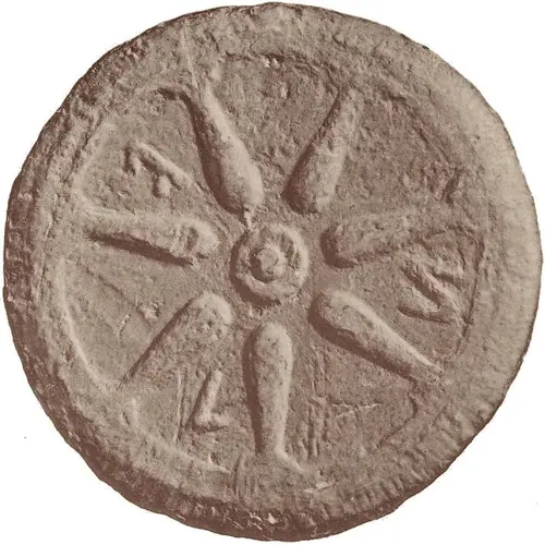 | Popis líce | Six-spoked wheel with letters between spokes. |