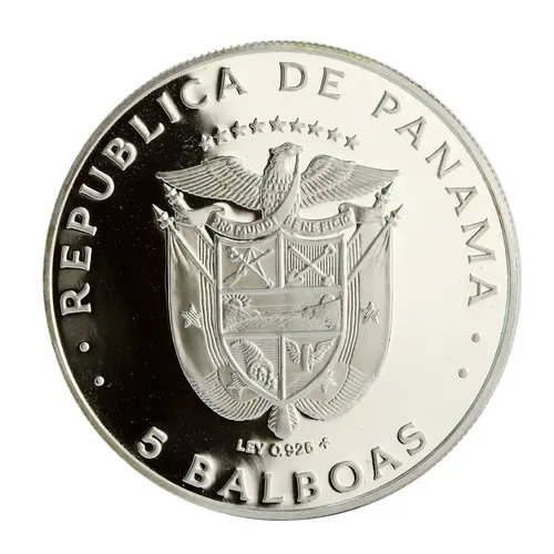 | Obverse lettering | · · REPUBLICA DE PANAMA · · ********* PRO MUNDI BENEFICIO LEY 0.925 FM 5 BALBOAS (Translation: Republic of Panama For the Benefit of the World 0.925 Purity) |