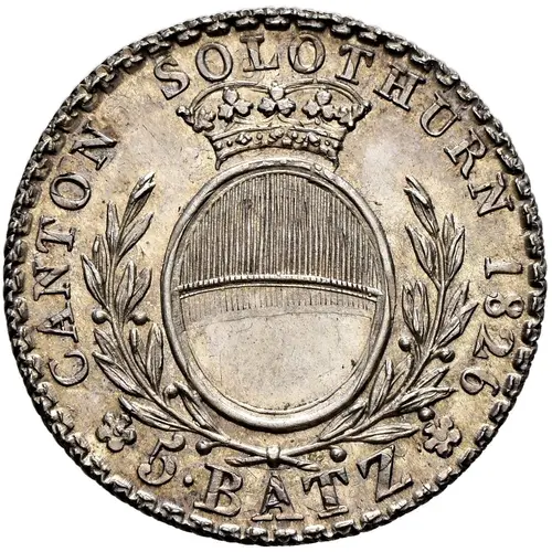 Opschrift voorzijde CANTON SOLOTHURN 1826 * 5·BATZ *