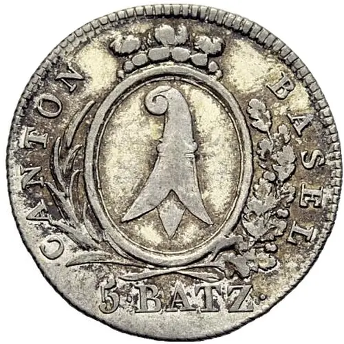 | Obverse lettering | CANTON BASEL 5·BATZ· |