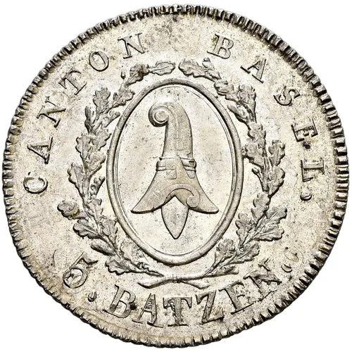 | 表面の銘文 | CANTON BASEL. 5. BATZEN. |