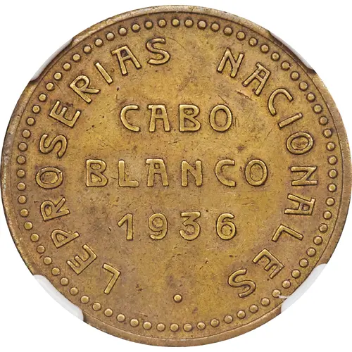 | Obverse lettering | LEPROSERIAS NACIONALES • CABO BLANCO 1936 (Translation: National Leprosariums Cabo Blanco (White Cape) 1936) |