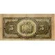 Reverse description Coat of arms at center divides issuer name on top and bottom, face value in numbers on sides. Face value in numbers on all 4 corners, rotated 45º; legend `5 CINCO` repeated 3 times on upper and lower left and right near to border; legend `CINCO` rotated 90º, base to center, repeated twice on each side.