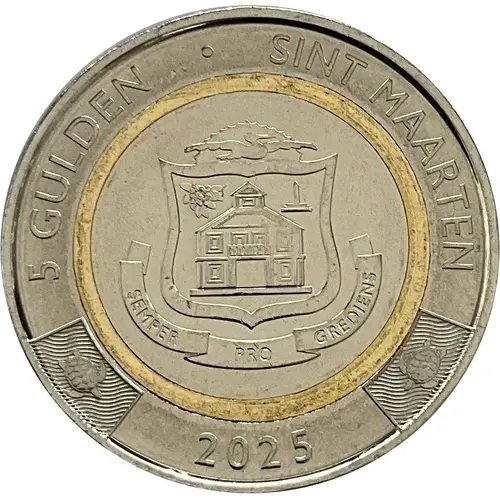 | Obverse lettering | 5 GULDEN SINT MAARTEN 2025 SEMPER PRO GREDIENS (Translation: Always progressing) |