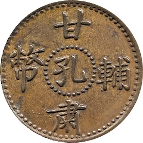 | Legenda del dritto | 甘 幣孔輔 肅 (Translation: Kan Su Fu Bi / Kong Kansu (province) / Auxiliary currency / Kong) |