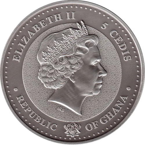 | Obverse lettering | ELIZABETH II 5 CEDIS IRB • REPUBLIC OF GHANA • |