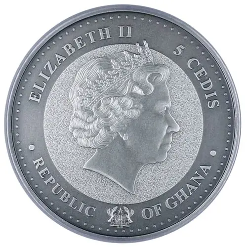 | Obverse lettering | ELIZABETH II 5 CEDIS IRB • REPUBLIC OF GHANA • |