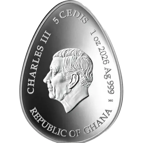 | Obverse lettering | CHARLES III 5 CEDIS 1 oz 2026 Ag 999 XXI REPUBLIC OF GHANA |