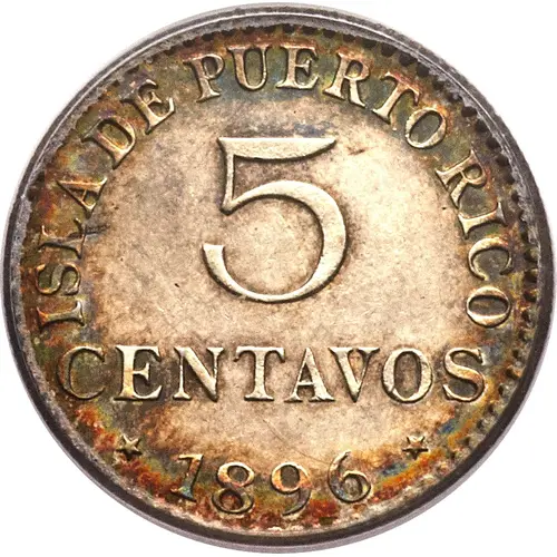 ISLA DE PUERTO RICO 5 CENTAVOS ★ 1896 ★ (Translation: Puerto Rico Island 5 Cents 1896) |