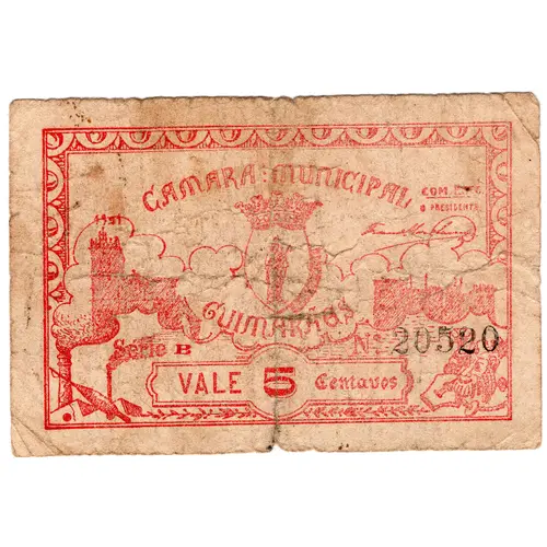 | Obverse lettering | CAMARA MUNICIPAL GUIMARÃES VALE 5 CENTAVOS (Translation: Guimarães City Council Worth 5 cents) |