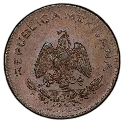 | Reverse lettering | CHIHUAHUA 1915 V CENTAVOS M.S |
