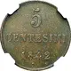 | Reverse lettering | 5 CENTESIMI 1842 |
