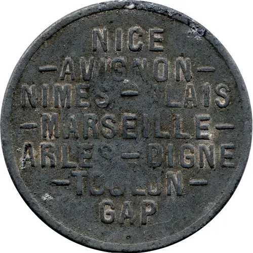 | Obverse lettering | NICE - AVIGNON - NIMES - ALAIS - MARSEILLE - ARLES - DIGNE - TOULON - GAP |