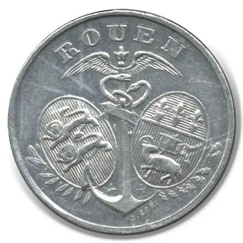| Obverse description | Coat of arms of the Seine-Maritime department and the city of Rouen on either side of a winged anchor, under the city`s name. |