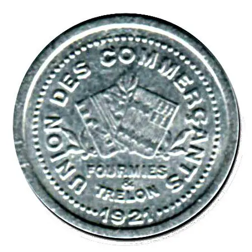 | Obverse lettering | UNION DES COMMERÇANTS FOURMIES & TRELON 1921 |