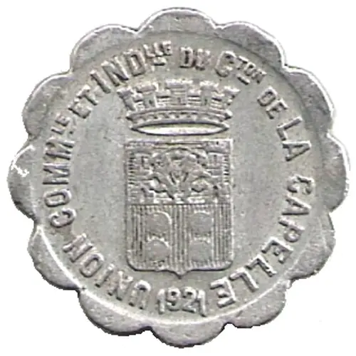 | Obverse lettering | UNION COMMLE ET INDLLE DU CTON DE LA CAPELLE 1921 |