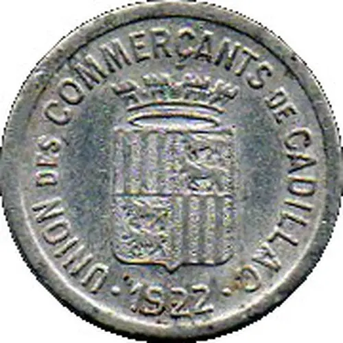 | Obverse lettering | UNION DES COMMERÇANTS DE CADILLAC · 1922 · |