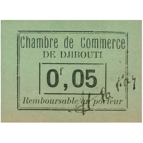 Opis líce CHAMBRE DE COMMERCE DE DJIBOUTI 0f, 05 REMBOURSABLE AU PORTEUR