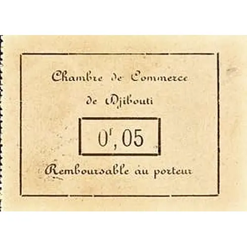 Chambre de Commerce de Djibouti 0f, 05 Remboursable au porteur (Translation: Chamber of Commerce of Djibouti. Reedeamable to the bearer.) |