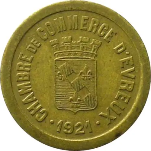 | Obverse lettering | CHAMBRE DE COMMERCE D`EVREUX · 1921 · |
