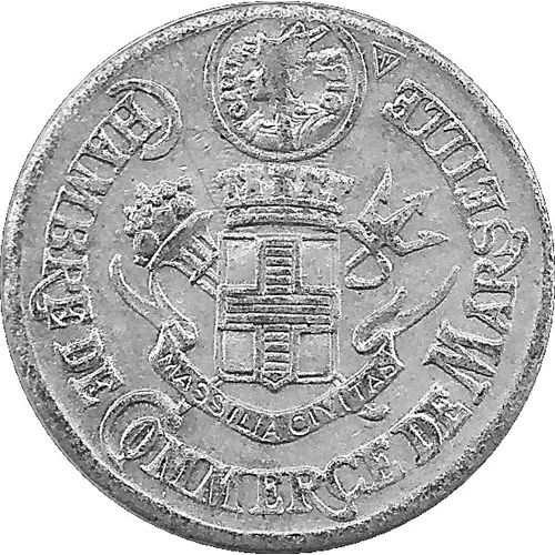 | Obverse description | Coat of Arms of the city of Marseille surrounded by legend, under a bust of Mercury in a medallion. |