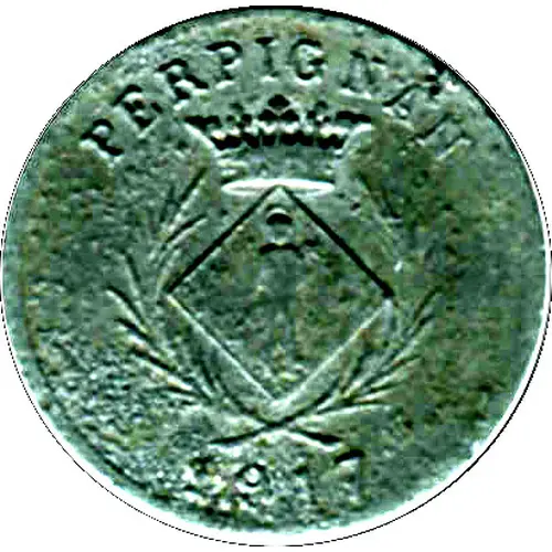 | Obverse description | Coat of arms of the city of Perpignan, under the name of the city and above the date. |