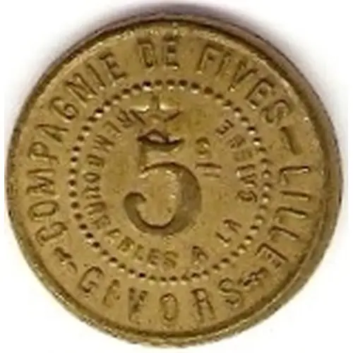 | Legenda awersu | COMPAGNIE DE FIVES-LILLE REMBOURSABLES A LA CAISSE 5 c GIVORS |