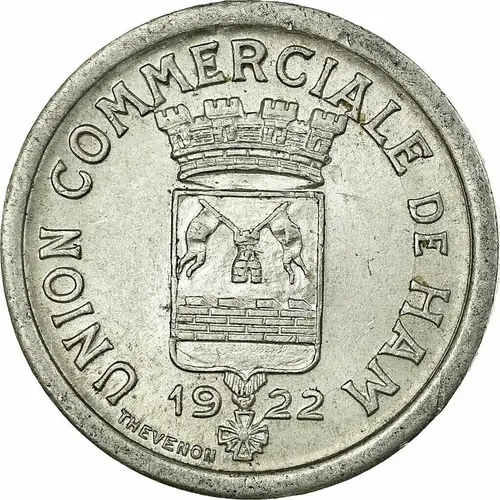Obverse lettering UNION COMMERCIALE DE HAM 19 22 THEVENON