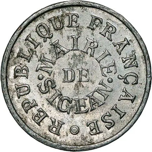 | Obverse lettering | REPUBLIQUE FRANÇAISE ·MAIRIE· DE SIGEAN (Translation: Mairie = Town Hall) |