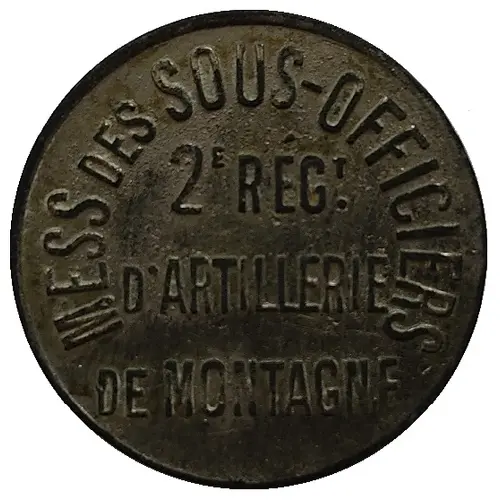 | Obverse lettering | MESS DES SOUS-OFFICIERS 2E REG.T D`ARTILLERIE DE MONTAGNE |