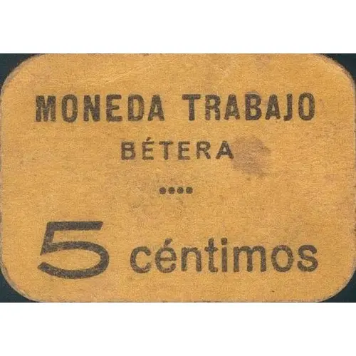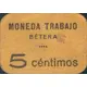 MONEDA TRABAJO BÉTERA 5 céntimos (Translation: Work Currency Bétera 5 Centimos) |