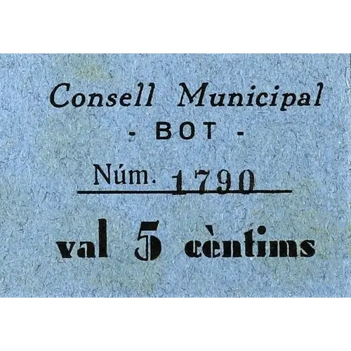 Consell Municipal - Bot - val 5 cèntims (Translation: Municipal Council - Bot - Value 5 Centimos) |