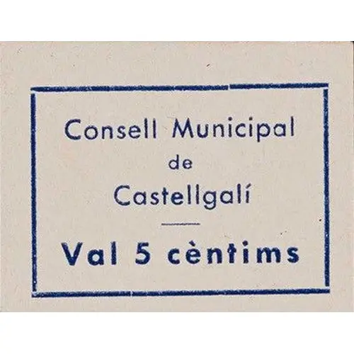 Consell Municipal de Castellgalí Val 5 cèntims (Translation: Municipal Council of Castellgalí It`s worth 5 Centimos) |