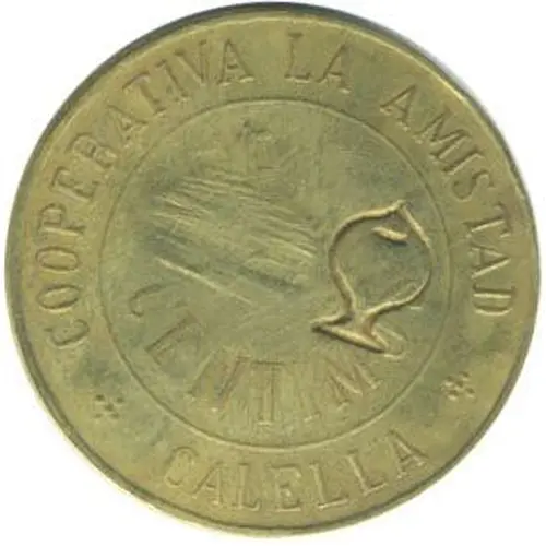 Obverse lettering COOPERATIVA `LA AMISTAD ` CALELLA 5 CENTIMOS