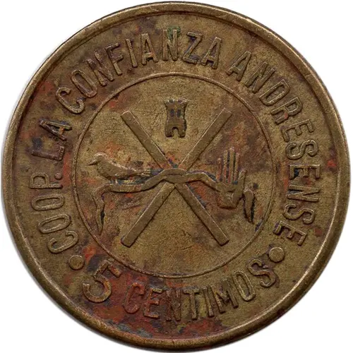 COOP. LA CONFIANZA ANDRESENSE · 5 CENTIMOS · (Translation: Cooperative `La Confianza Andresense`) |