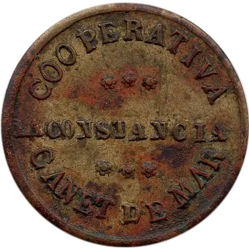 | Legenda do anverso | ❀ COOPERATIVA ❀ LA CONSTANCIA ❀ CANET DE MAR ❀ |