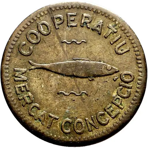 | Obverse description | Fish in center between waving lines, lettering around. |