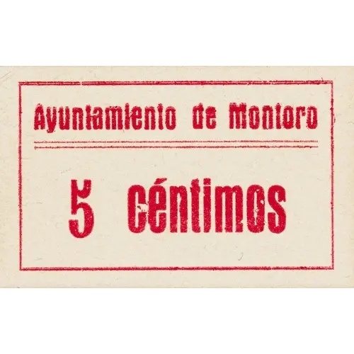 | Obverse lettering | Ayuntamiento de Montoro 5 céntimos (Translation: City Council of Montoro 5 Centimos) |