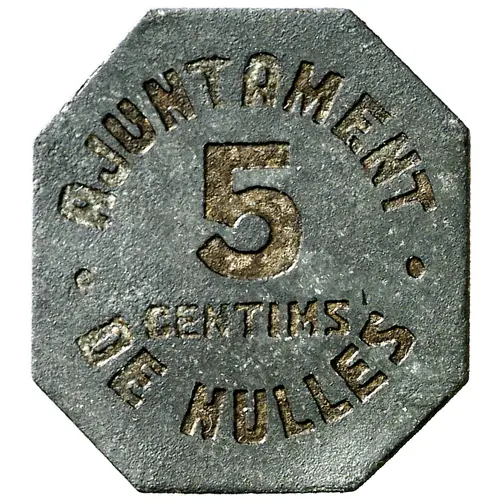 | Chữ khắc mặt trước | AJUNTAMENT 5 CENTIMS · DE NULLES · |