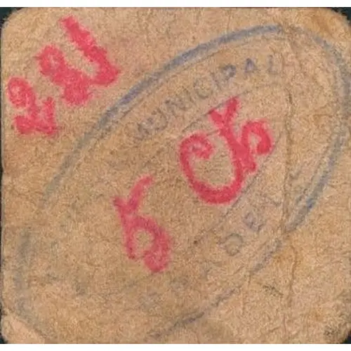 | Obverse description | Municipal oval stamp, with red handwritten face value inside and handwritten red serial number outside |