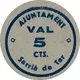 | Obverse description | Blue lettering and circular line perimeter framing on round light grey cardboard |