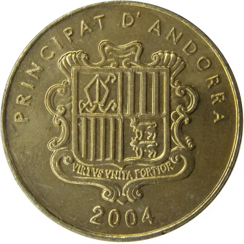 | نوشتههای روی سکه | PRINCIPAT D`ANDORRA VIRTVS VNITA FORTIOR 2004 (Translation: Principality of Andorra United virtue is stronger) |