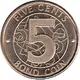 | Arka yüz açıklaması | Large 5 center on the background of numerals 5, denomination at the top, Bond Coin at the bottom. |