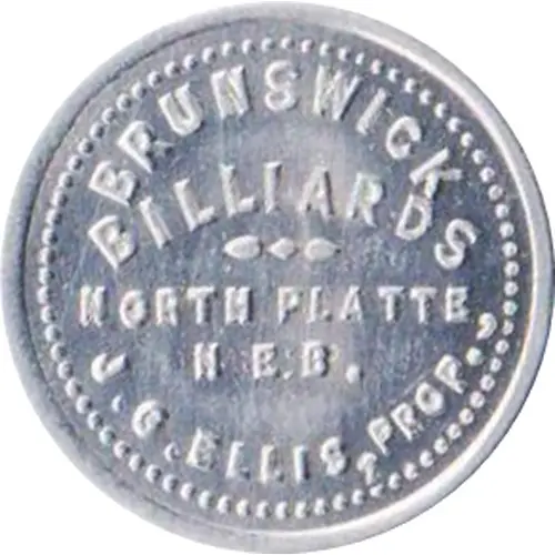 | Obverse lettering | BRUNSWICK BILLIARDS NORTH PLATTE, NEB. J.G. ELLIS, PROP. |